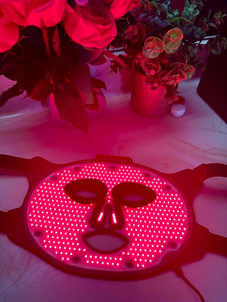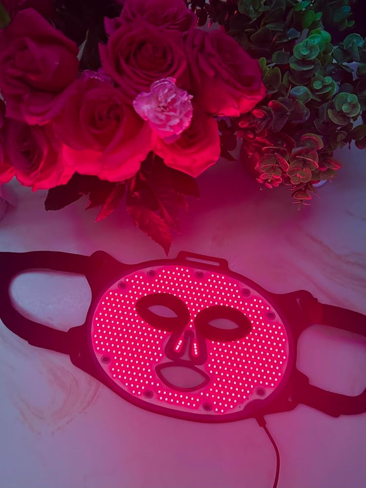 This LED facial mask is a wearable electronic device intended for general non medical non therapeutic personal care use. It features an integrated array of LEDs housed within a rigid plastic shell and operates through a wired external control unit that allows basic session timing and intensity selection.... ...